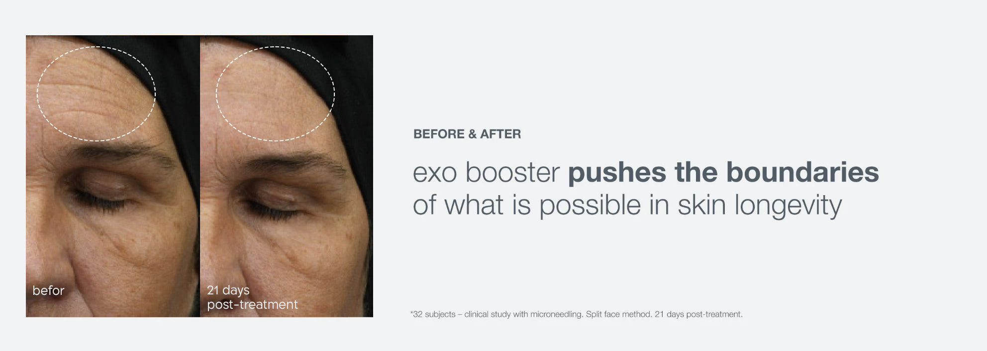 טיפול עם אקסו בוסטר כולל 10 מיליארד אקסוזומים ממקור של חיידקים פרוביוטיים ידידותיים מסוג לקטובסילוס, המתמזגים עם פורמולת Pro Resolution וטכנולוגיות אסתטיות מתקדמות, לחידוש תאים טבעי והגברת החיוניות של העור.