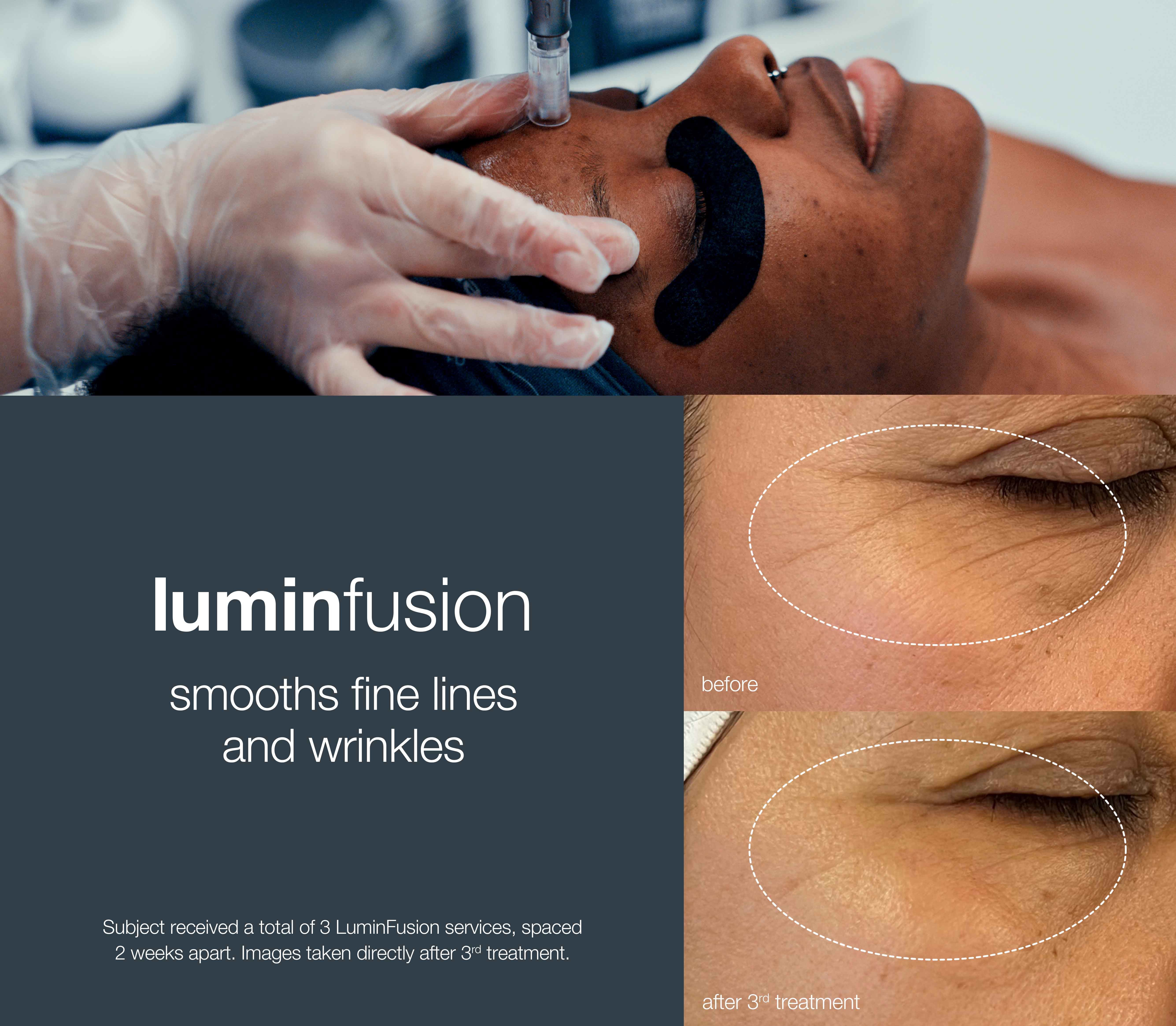 Luminfusion is an advanced 60-minute skin service that combines a targeted retinol peel, nanoinfusion technology, and LED red light therapy.